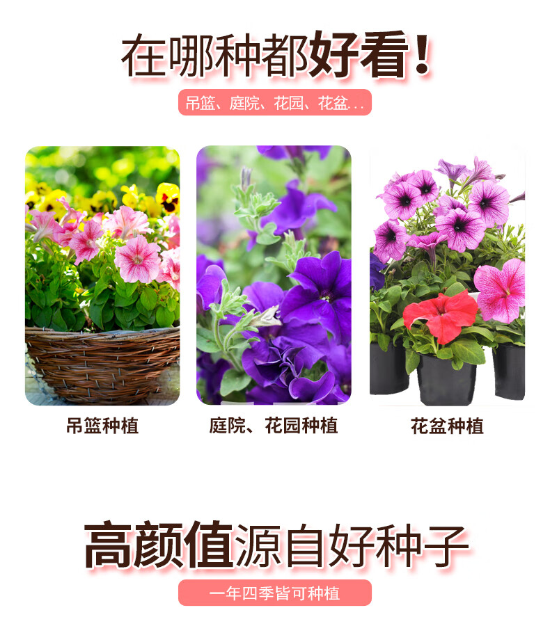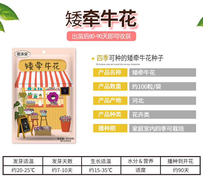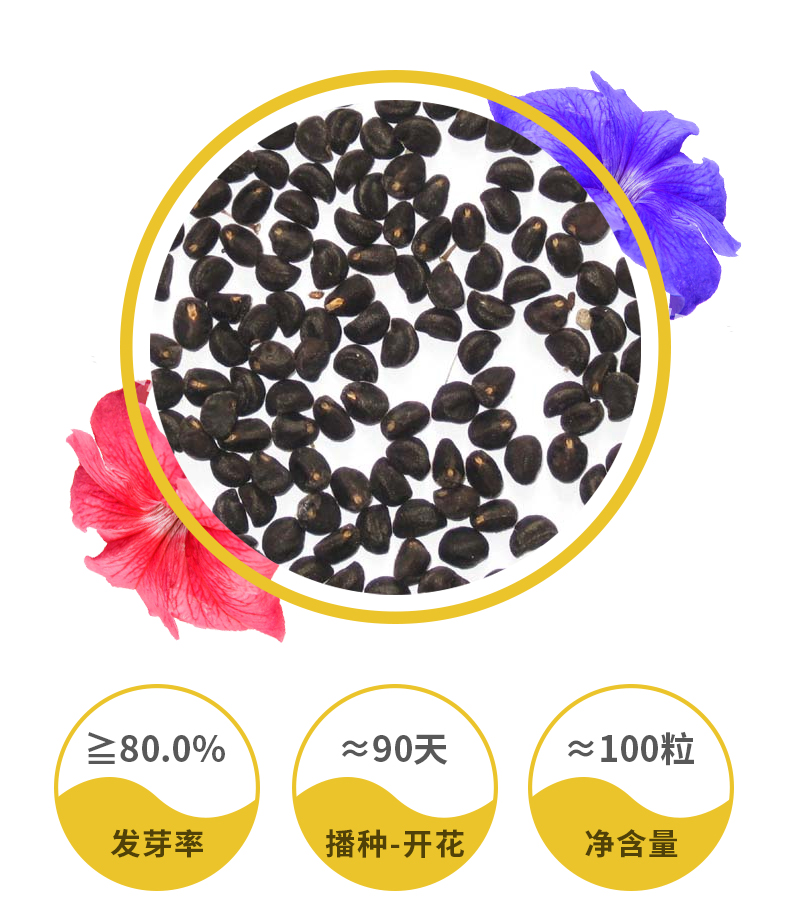 种类:草花;适种区域:东北,华北,华中,华东,华南,西南,西北;适播季节:春,夏,秋;国别:国产;类别:常规种子;种子经营许可证编号:D[翼沧青]农种许字(2019)第0003号;包衣:无包衣;生产年份(年):2020年;芽率(%):80;水分(%):9%;净度(%):98%;纯度(%):95%;包装清单:矮牵牛花种子1袋;