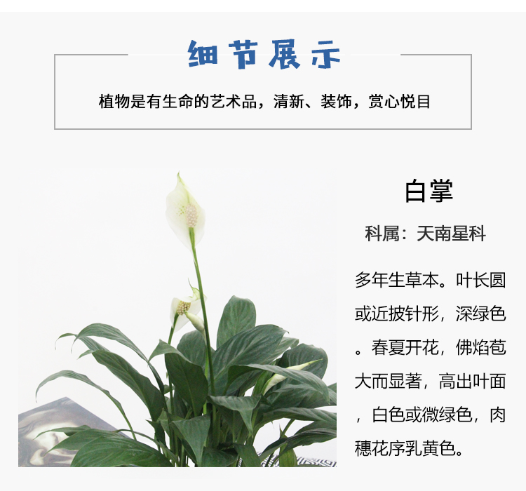 植物品种:白掌;是否含花盆:含盆;植物类别:观叶植物;适用空间:阳台,客厅,办公桌,书房;包装清单:白掌x1,花盆x1;