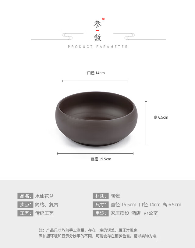 尺寸:11-15cm;材质:陶瓷;适用空间:桌面,地面;底部留孔:无孔;品牌:晨色;包装清单:花盆*1;