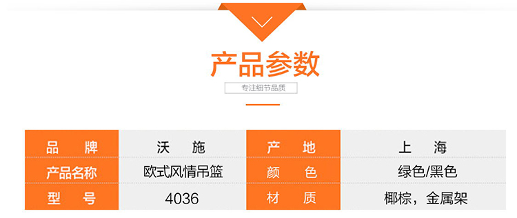 风格:欧式;尺寸:26-30cm;材质:其它;底部留孔:有孔;适用空间:桌面,垂吊,壁挂,其它;尺寸:255*255*140;品牌:沃施(WORTH);包装清单:25.5cm椰棕吊篮*1;