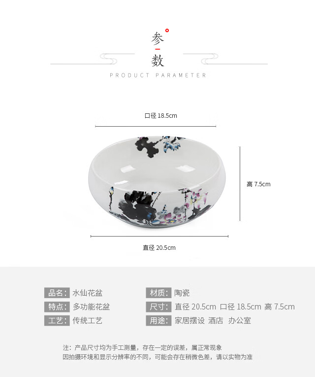 尺寸:21-25cm;材质:陶瓷;适用空间:桌面,地面;底部留孔:无孔;品牌:晨色;包装清单:花盆*1;