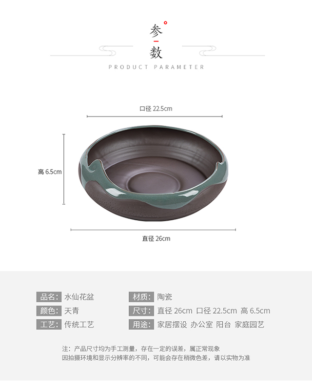 尺寸:26-30cm;材质:陶瓷;适用空间:桌面,地面;底部留孔:无孔;品牌:晨色;包装清单:花盆*1;