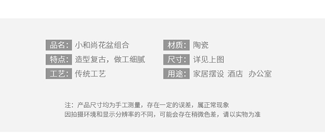 尺寸:21-25cm;材质:陶瓷;适用空间:桌面,地面;底部留孔:有孔;品牌:晨色;包装清单:花盆*1;