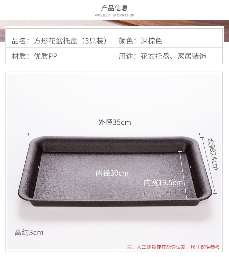 材质:塑料;底部留孔:无孔;尺寸:31cm以上;品牌:漫生活;包装清单:3个装长方形花盆托盘;