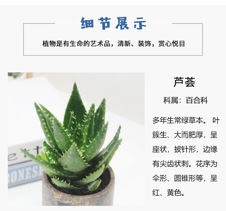 植物品种:芦荟;是否含花盆:含盆;植物类别:观叶植物;适用空间:阳台,客厅,办公桌,书房;包装清单:芦荟x1,花盆x1;