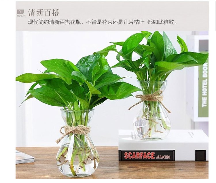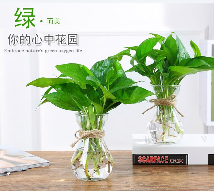 是否含花盆:含盆;植物品种:绿萝;植物类别:观叶植物;适用空间:客厅,办公桌,卧室,书房;包装清单:绿萝水培玻璃瓶2套装;
