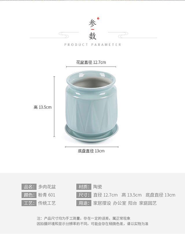 尺寸:11-15cm;材质:陶瓷;适用空间:桌面,地面;底部留孔:有孔;品牌:晨色;包装清单:花盆*1;