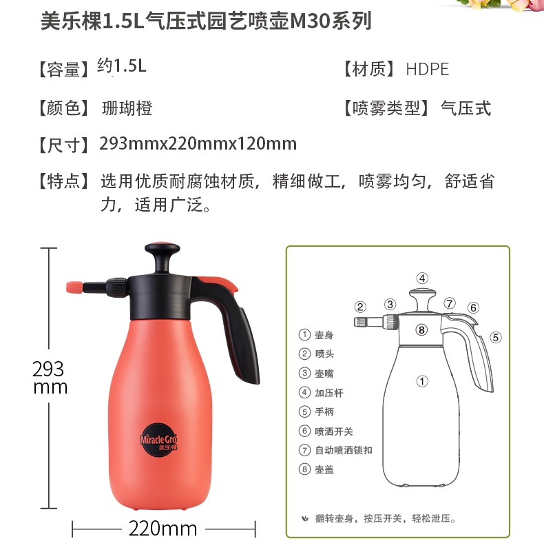 洒水浇水壶:喷壶;分类:洒水浇水壶;材质:树脂/PVC;产地:国产;品牌:美乐棵;包装清单:商品X1;