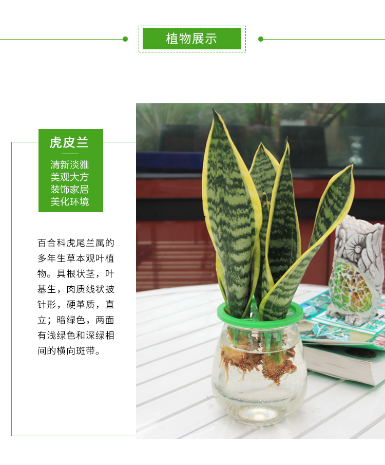 植物品种:其它;是否含花盆:含盆;植物类别:水培植物;适用空间:阳台,客厅,办公桌,书房;包装清单:虎皮兰X1 、 塑料盆X1;