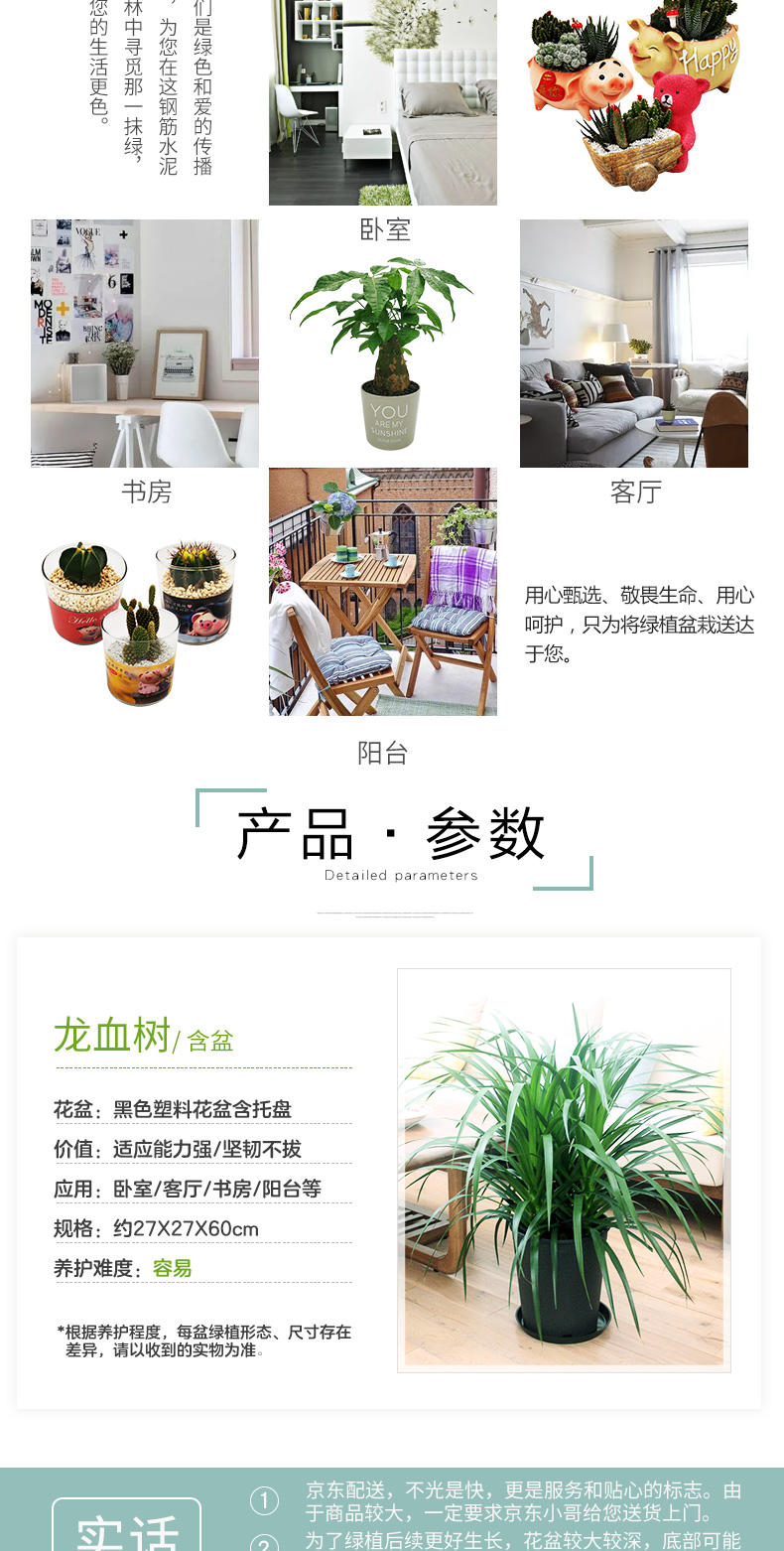 植物品种:其它;是否含花盆:含盆;整体高度:51cm-80cm;是否开花:否;适用空间:办公室,接待前台,书房,客厅;品牌:花七休;包装清单:三头龙血树×1、加厚黑色塑料花盆×1、黑色塑料托盘、包装箱×1;