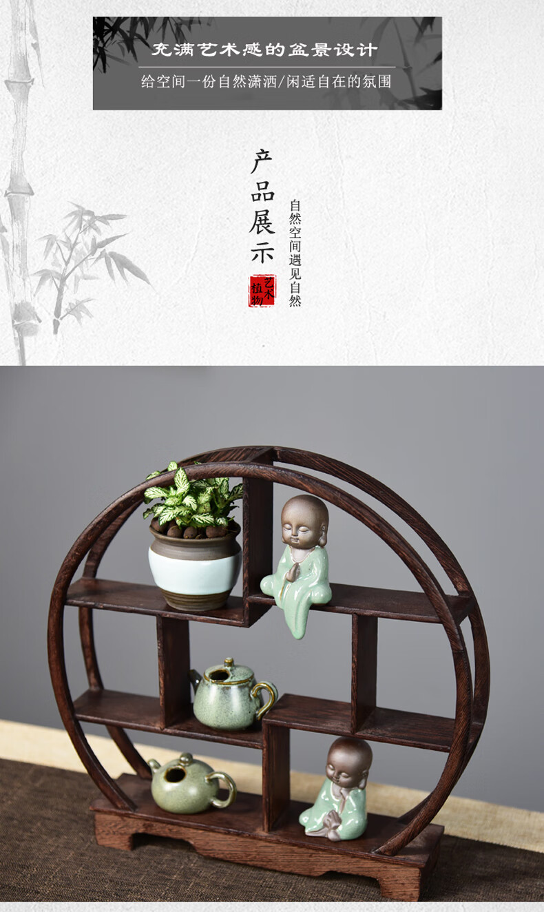 植物品种:其它;是否含花盆:带盆栽好;植物类别:观叶植物;适用空间:客厅,办公桌,书房;包装清单:博古架组合;