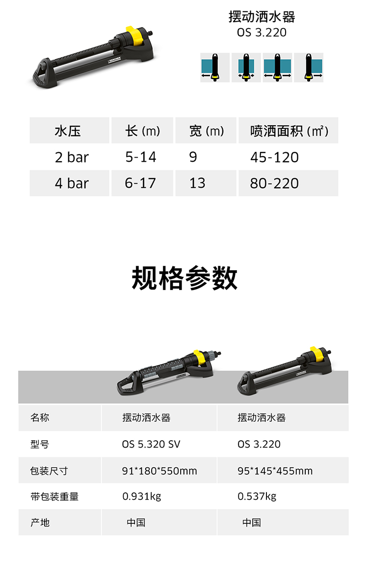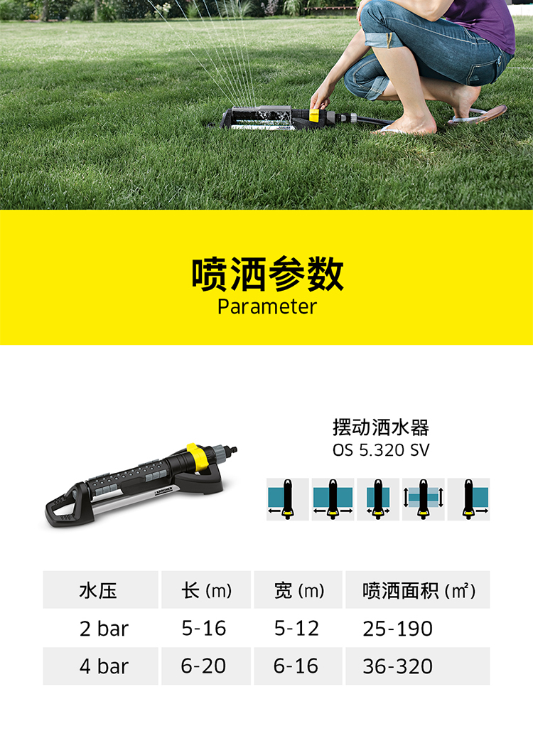 国产/进口:国产;分类:埋地式喷头;品牌:卡赫(KARCHER);包装清单:摆动洒水器OS 5.320 SV*1;