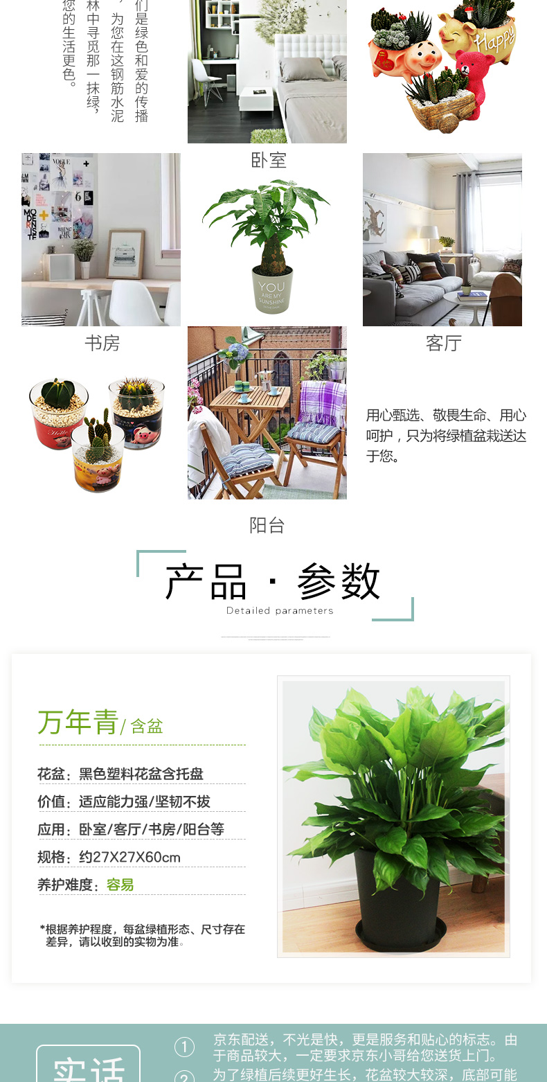 植物品种:万年青;是否含花盆:含盆;整体高度:51cm-80cm;是否开花:否;适用空间:办公室,接待前台,走廊,书房;品牌:花七休;包装清单:万年青×1、加厚黑色塑料花盆×1、黑色塑料托盘、包装箱×1;