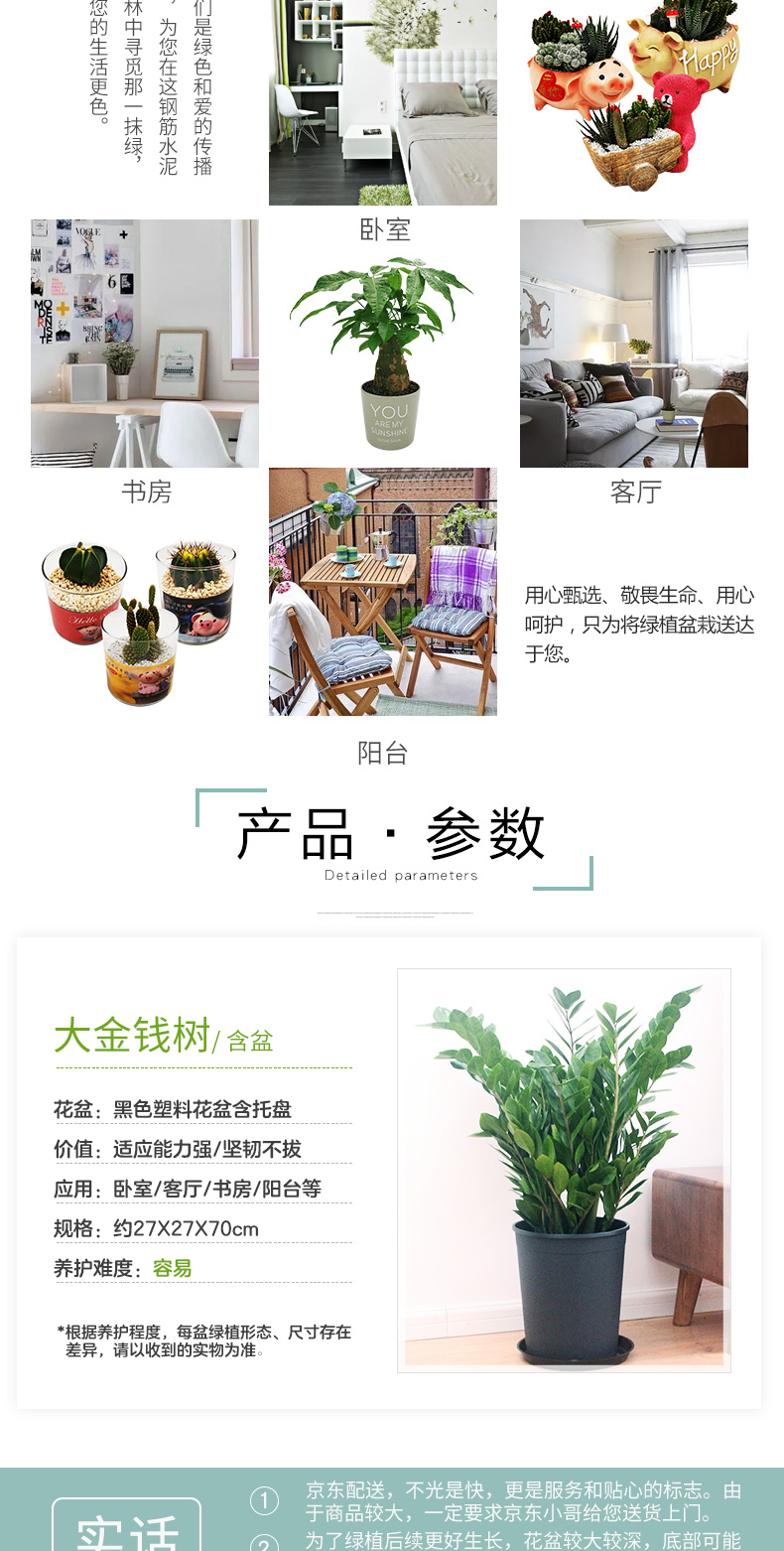 植物品种:金钱树;是否含花盆:含盆;整体高度:51cm-80cm;是否开花:否;适用空间:办公室,接待前台,书房,客厅;品牌:花七休;包装清单:金钱树×1、加厚黑色塑料花盆×1、黑色塑料托盘、包装箱×1;