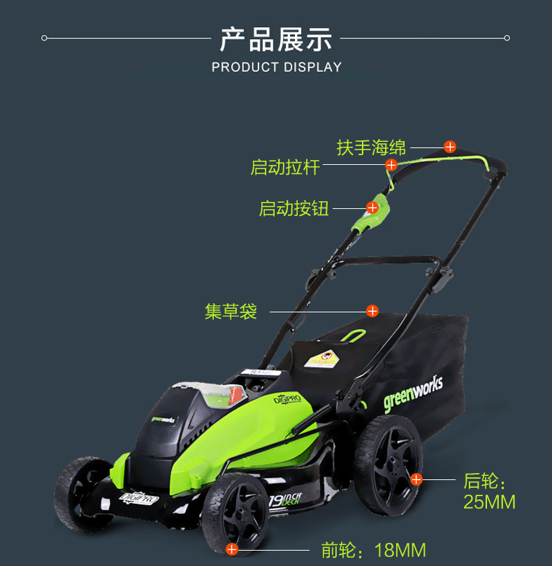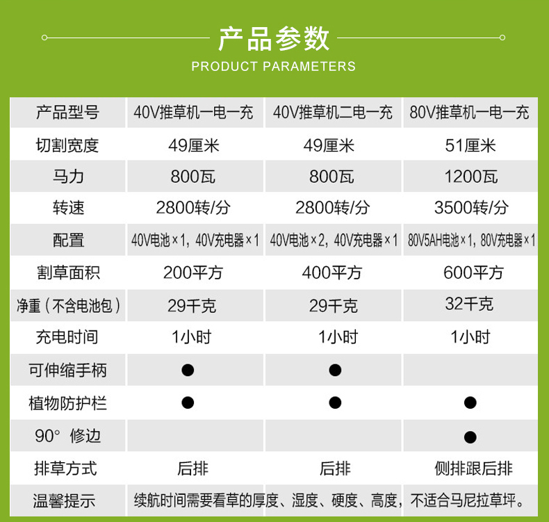 适用对象:草坪;机械类型:草坪修剪机;动力类型:电动;包装清单:裸机*1; 电池*1; 充电器*1; 说明书*1;