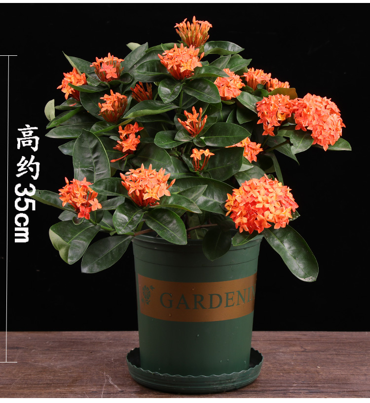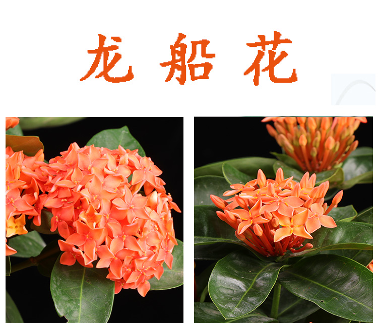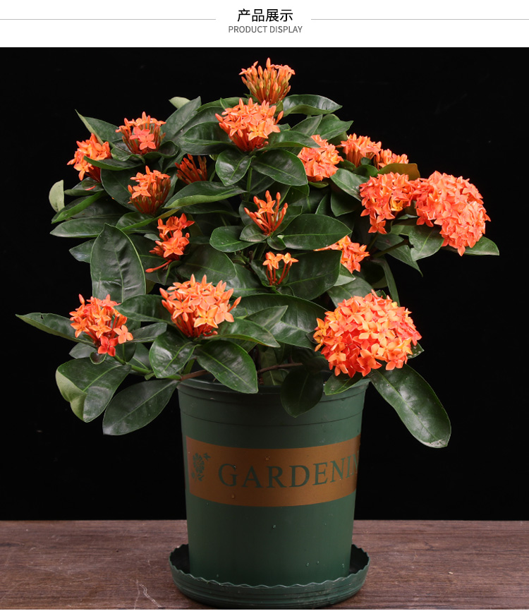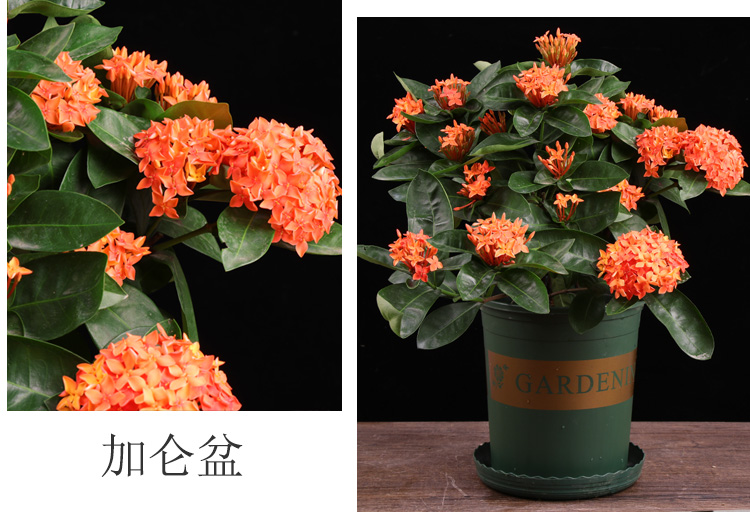 开花季节:长花期;植物品种:其它;是否含花盆:含盆;植物类别:木本花卉;适用空间:庭院,阳台,客厅;颜色:橙色;包装清单:龙船花盆栽(含加仑盆);