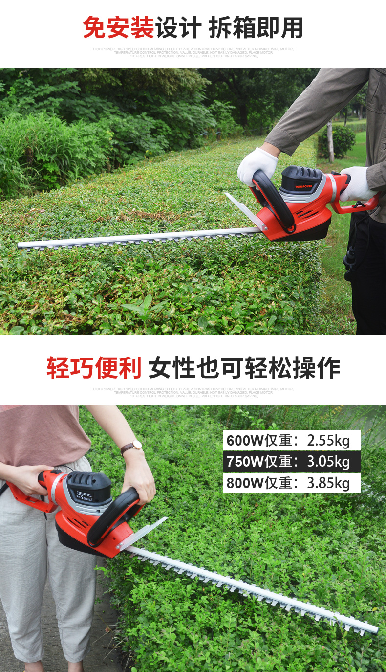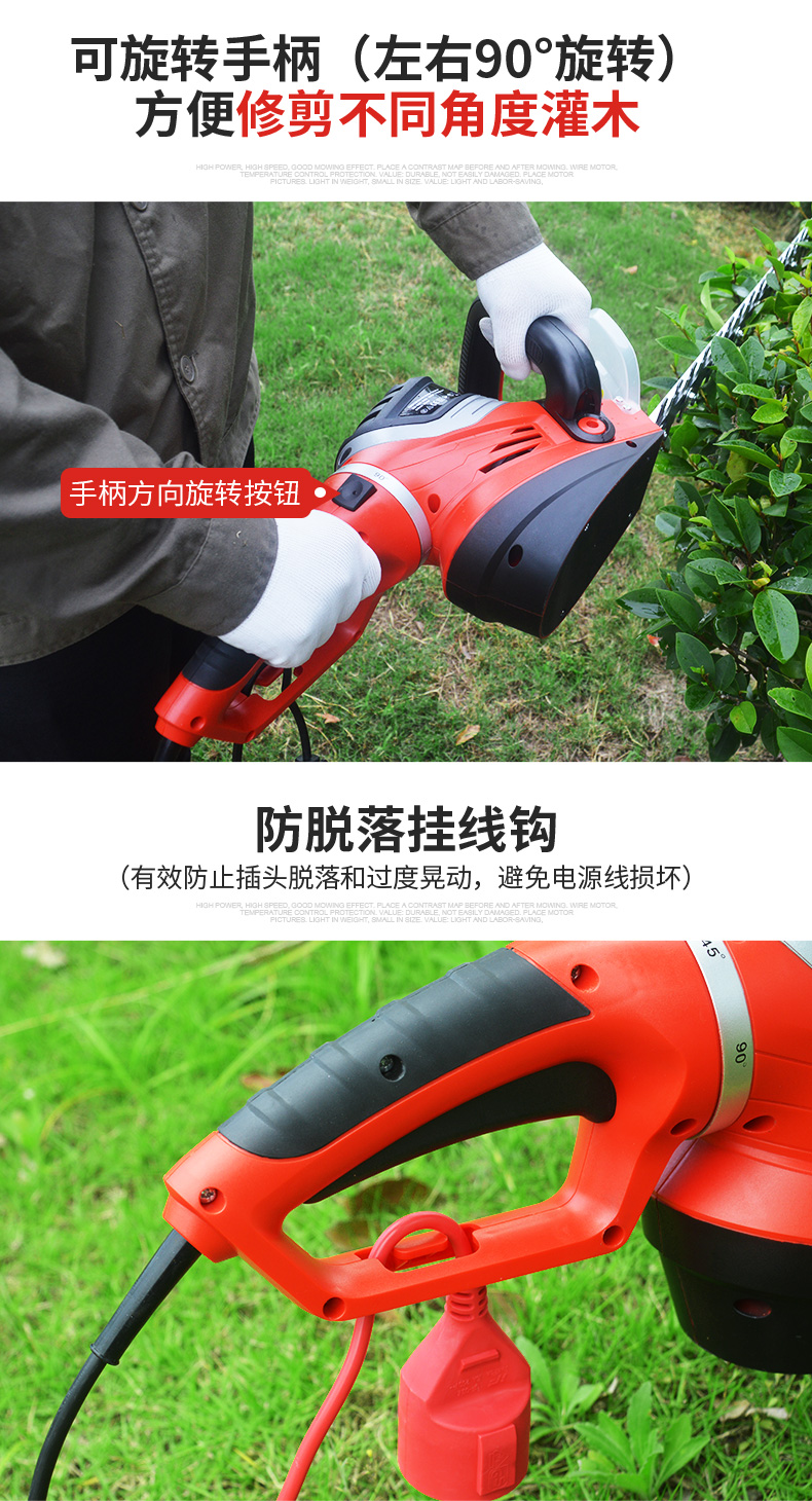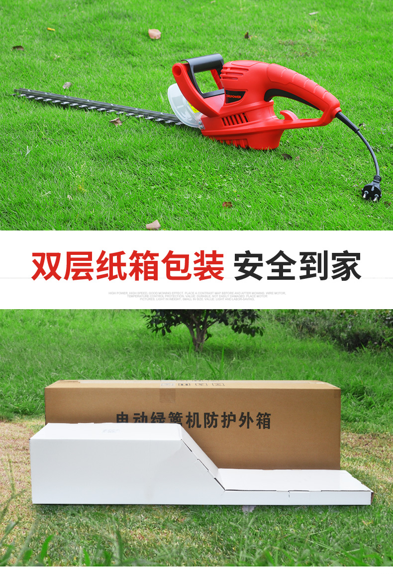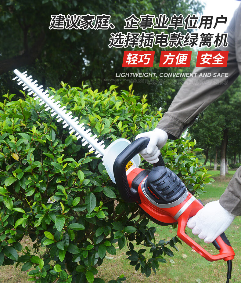 适用对象:路旁树篱;机械类型:绿篱修剪机;动力类型:电动;包装清单:电动绿篱机*1,说明书*1;