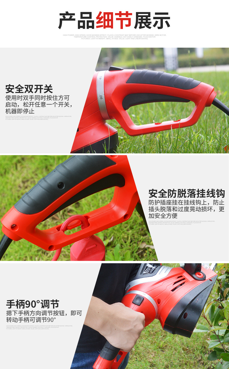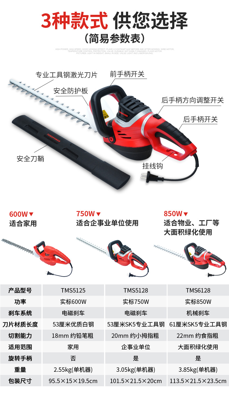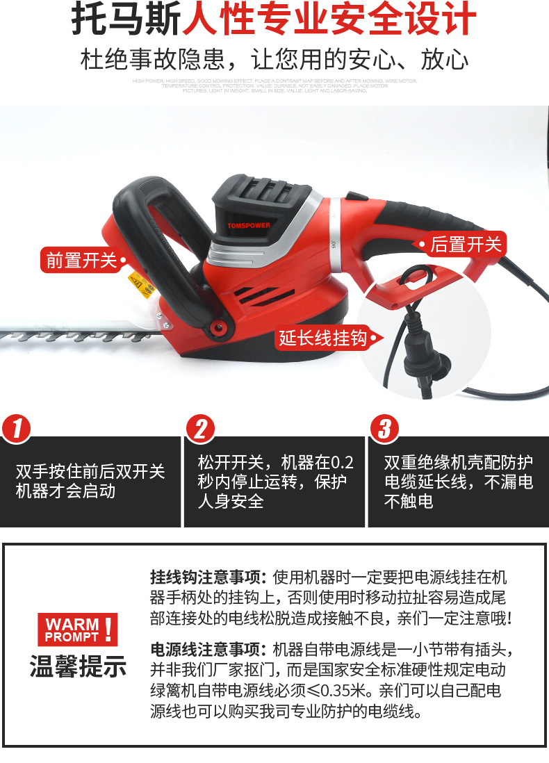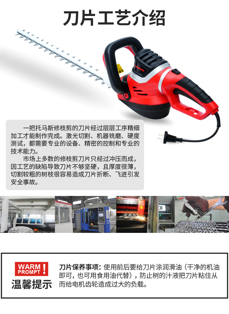 适用对象:路旁树篱;机械类型:绿篱修剪机;动力类型:电动;包装清单:电动绿篱机*1,说明书*1;