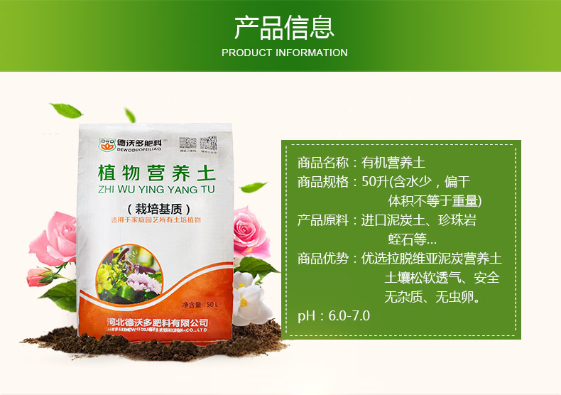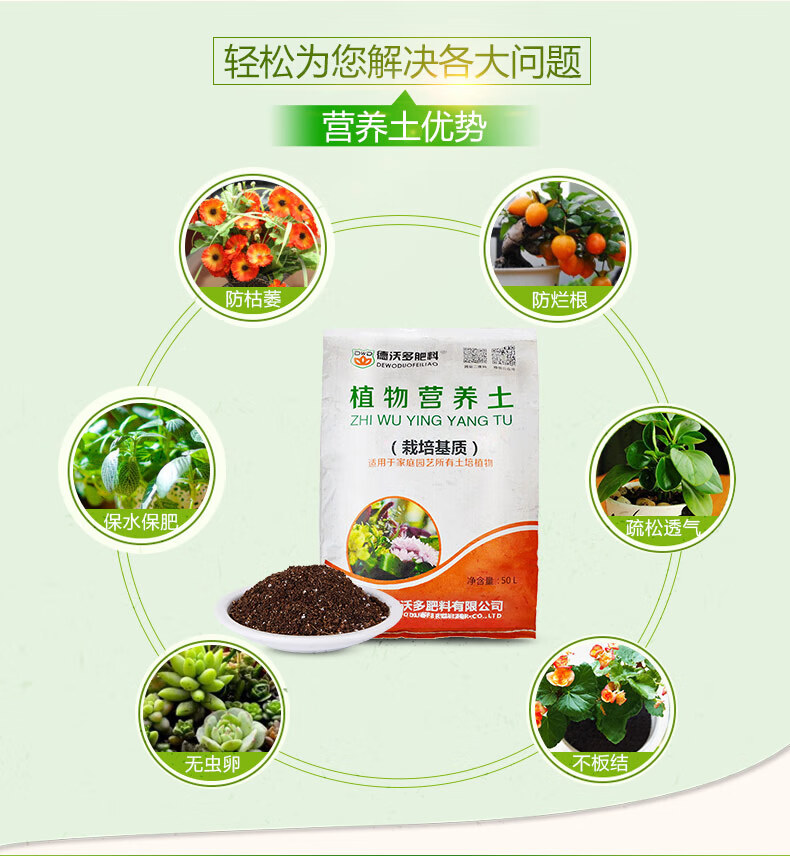 类型:泥炭;品牌:德沃多肥料;包装清单:营养土50L+磷酸二氢钾30g*2+生物有机肥60g*2;