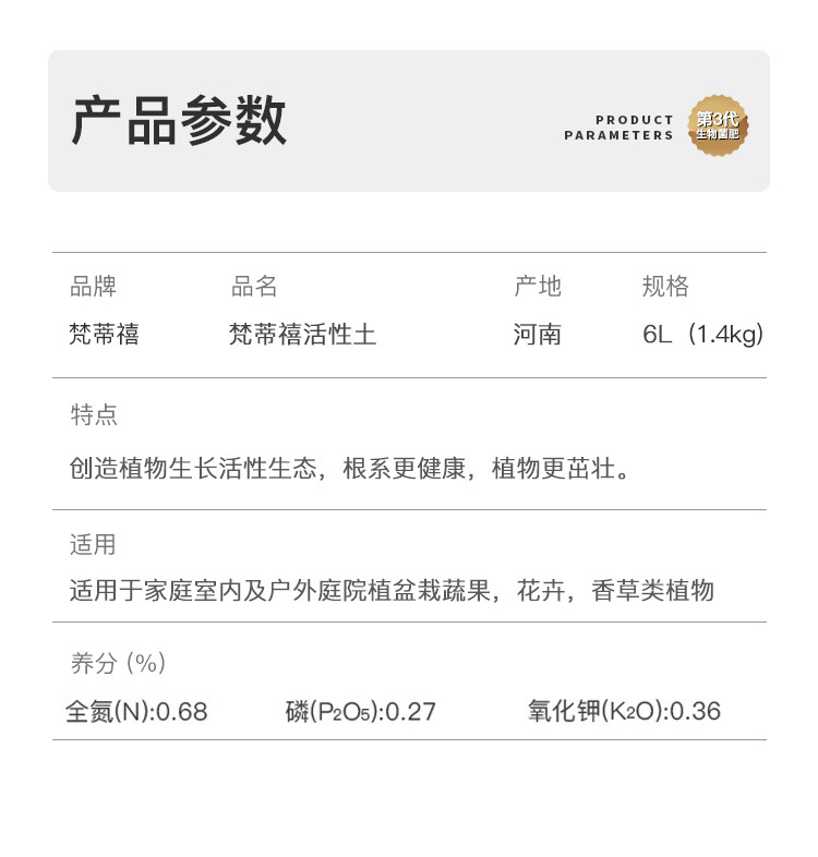 类型:其它;品牌:梵蒂禧;包装清单:梵蒂禧 活性营养土6L+有机营养液500ml;