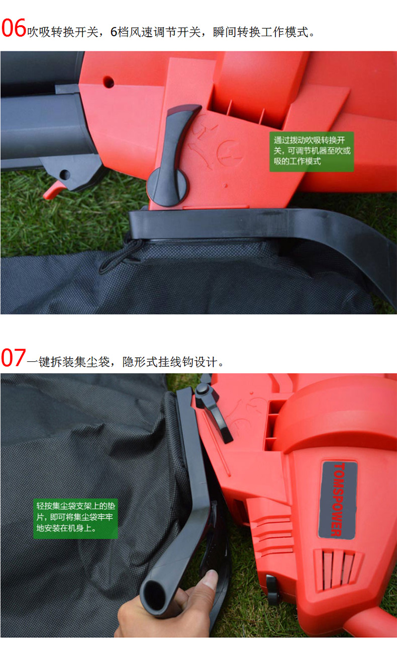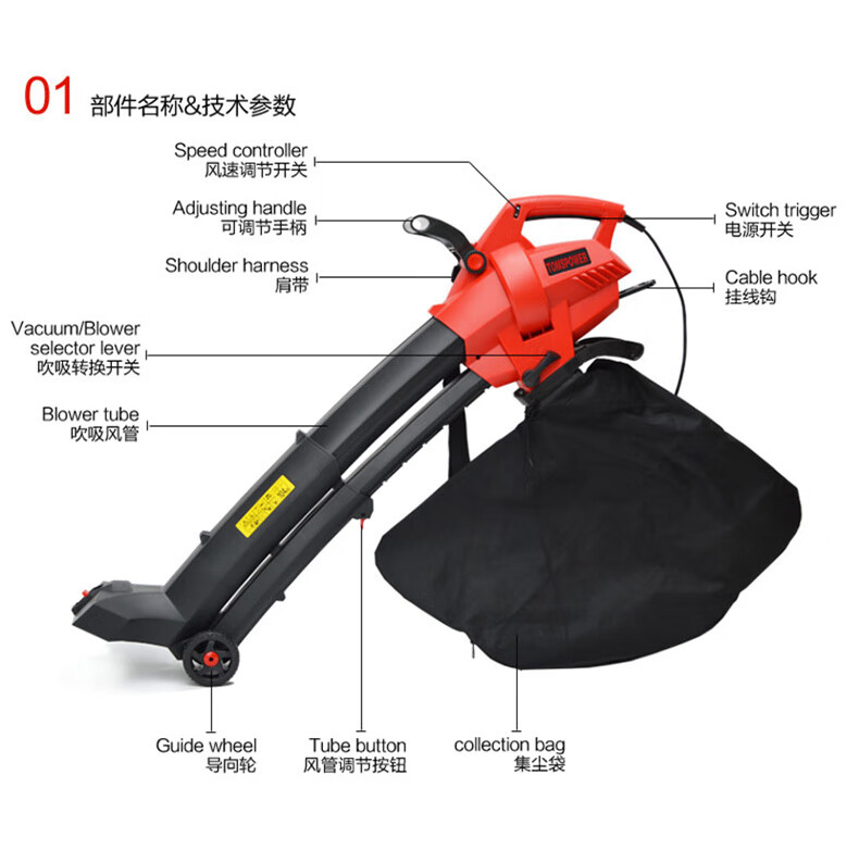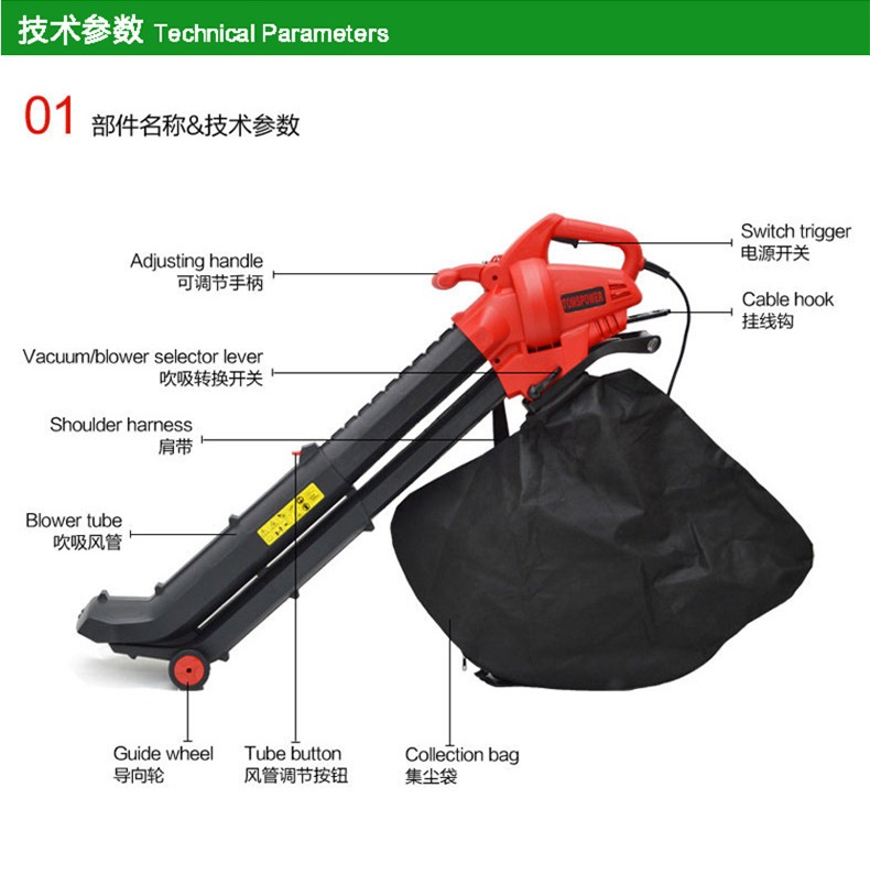 适用对象:草坪,其它;机械类型:其它;动力类型:电动;包装清单:电动吹吸机*1台,说明书*1;