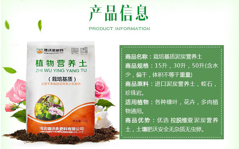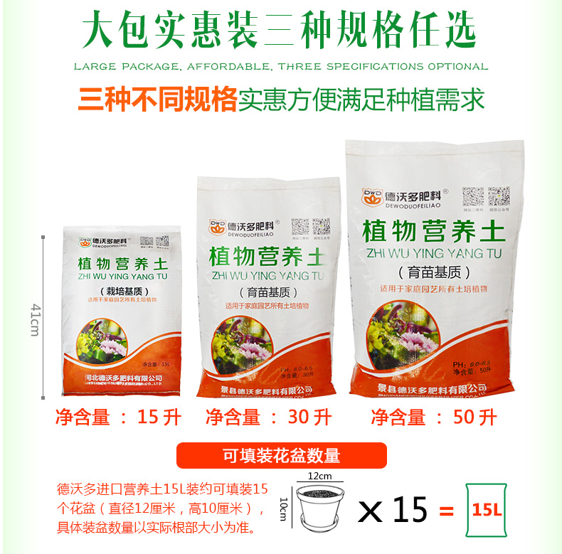 类型:泥炭;品牌:德沃多肥料;包装清单:通用营养土15L*1+磷酸二氢钾30g*2+生物有机肥60g*2;