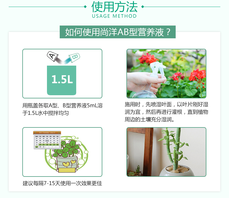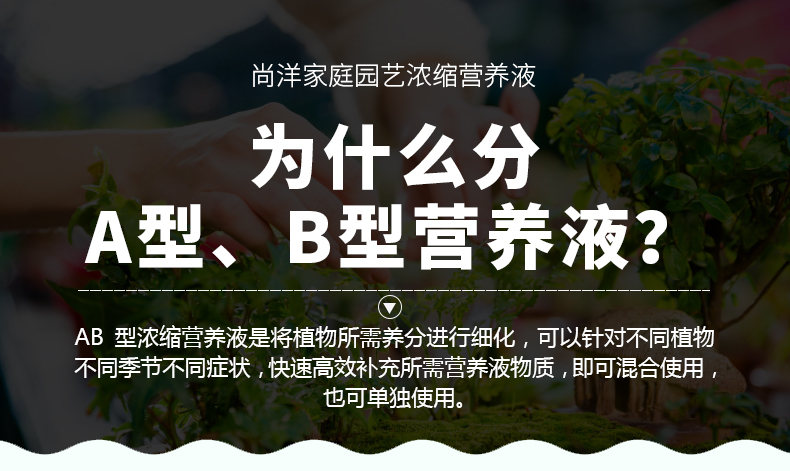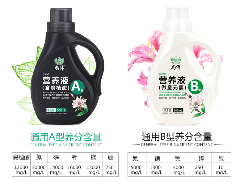性状:液体;营养类型:营养液;适用对象:多肉植物,兰科植物,通用型,水培型,蔬菜水果,观花植物,观叶植物,苗木,盆景,其它;品牌:尚洋;包装清单:尚洋AB营养液2瓶1000ml;