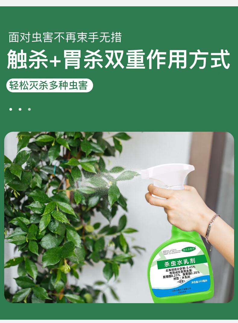药剂种类:杀虫剂;功效:杀虫;性状:液体;品牌:德沃多肥料;包装清单:花卉植物杀虫剂500ml;