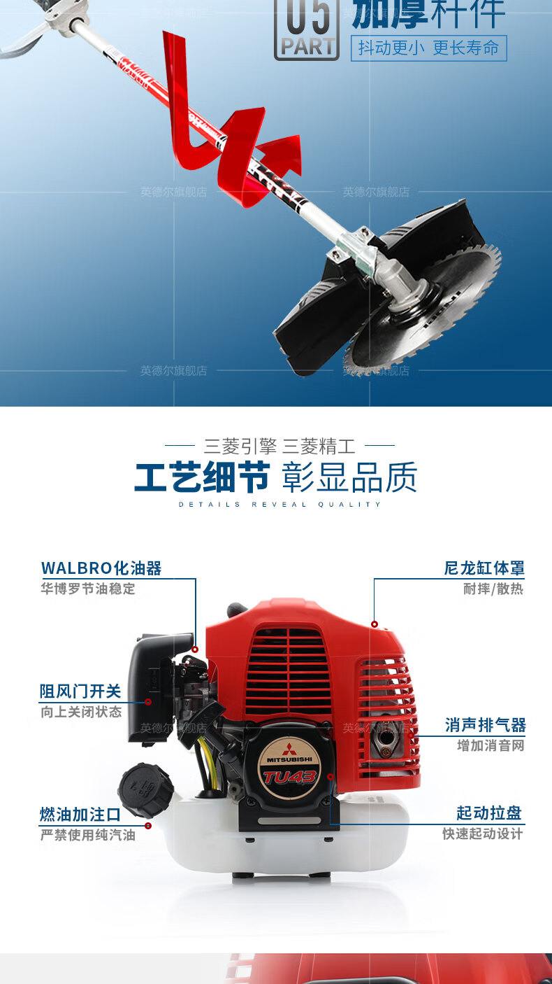动力类型:发动机驱动;包装清单:发动机主机1台 操作杆1套 工具包1套 一字刀1片 三齿刀1片 合金锯片1片 机油一瓶 赠品礼包1套;