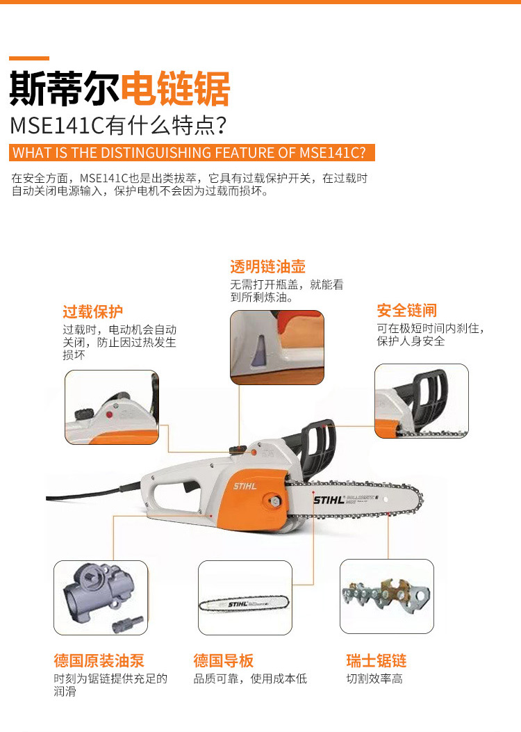 适用对象:树木;机械类型:油锯;动力类型:电动;包装清单:裸机*1; 说明书*1; 导板*1; 链条*1;