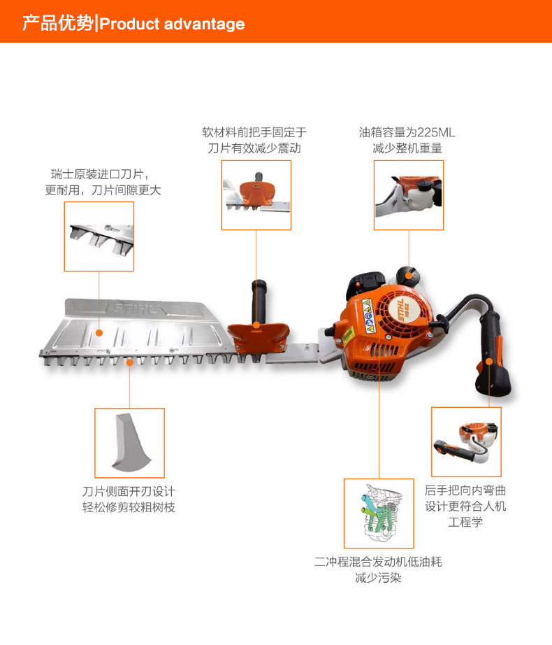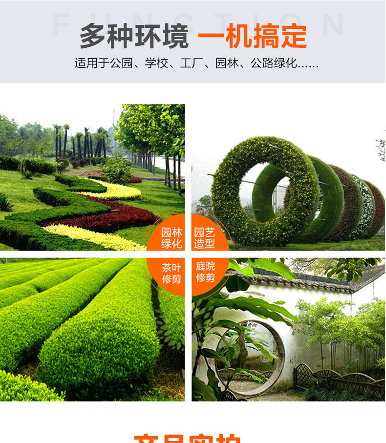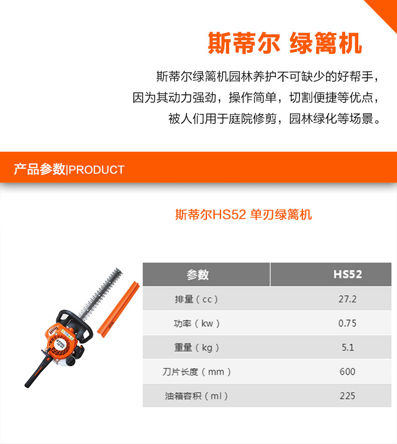 适用对象:路旁树篱;机械类型:绿篱修剪机;动力类型:二冲程;包装清单:裸机*1; 说明书*1;