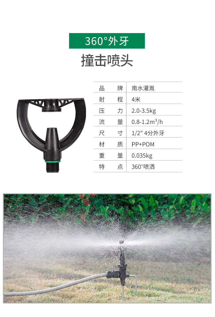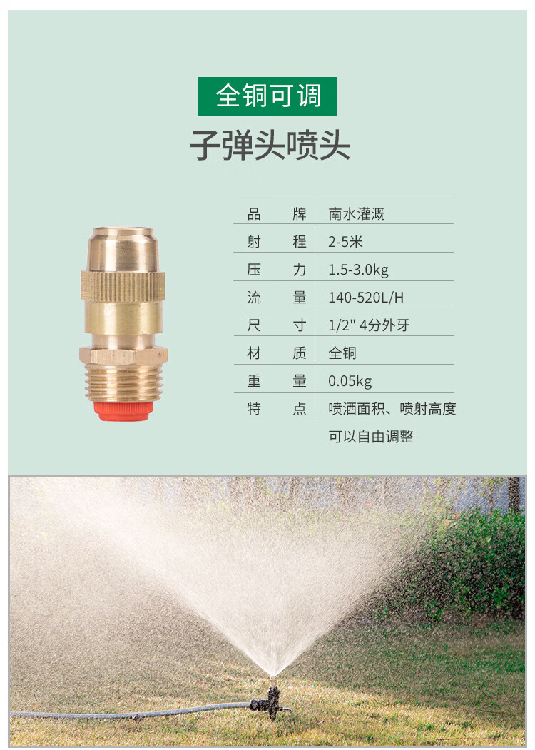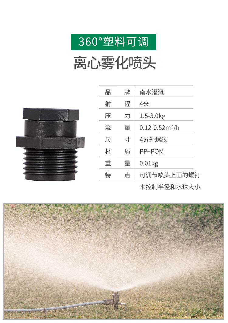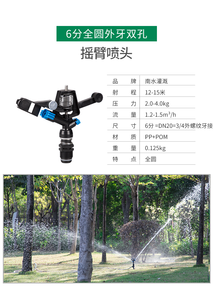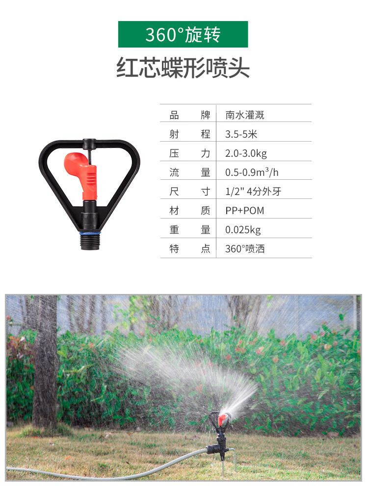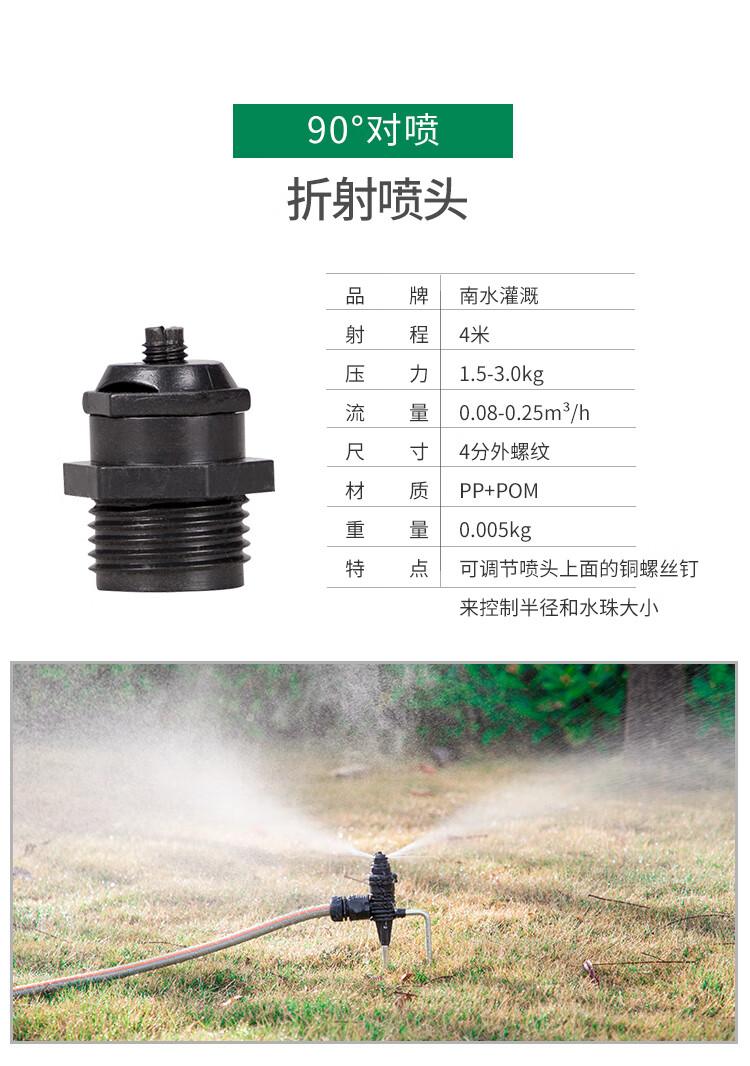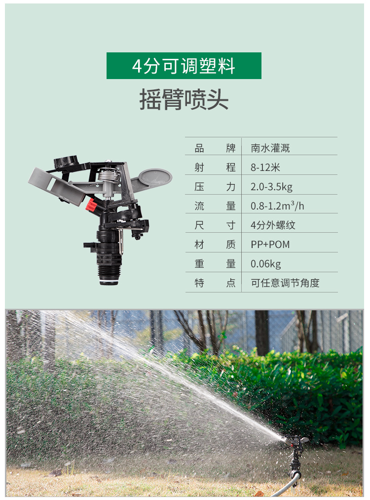 国产/进口:国产;分类:微喷;品牌:南水灌溉;包装清单:4分锌合金不可调角度摇臂喷头*2;
