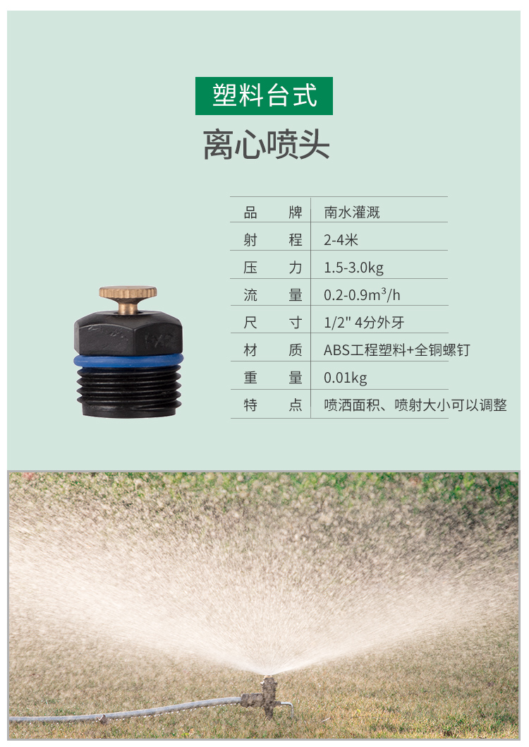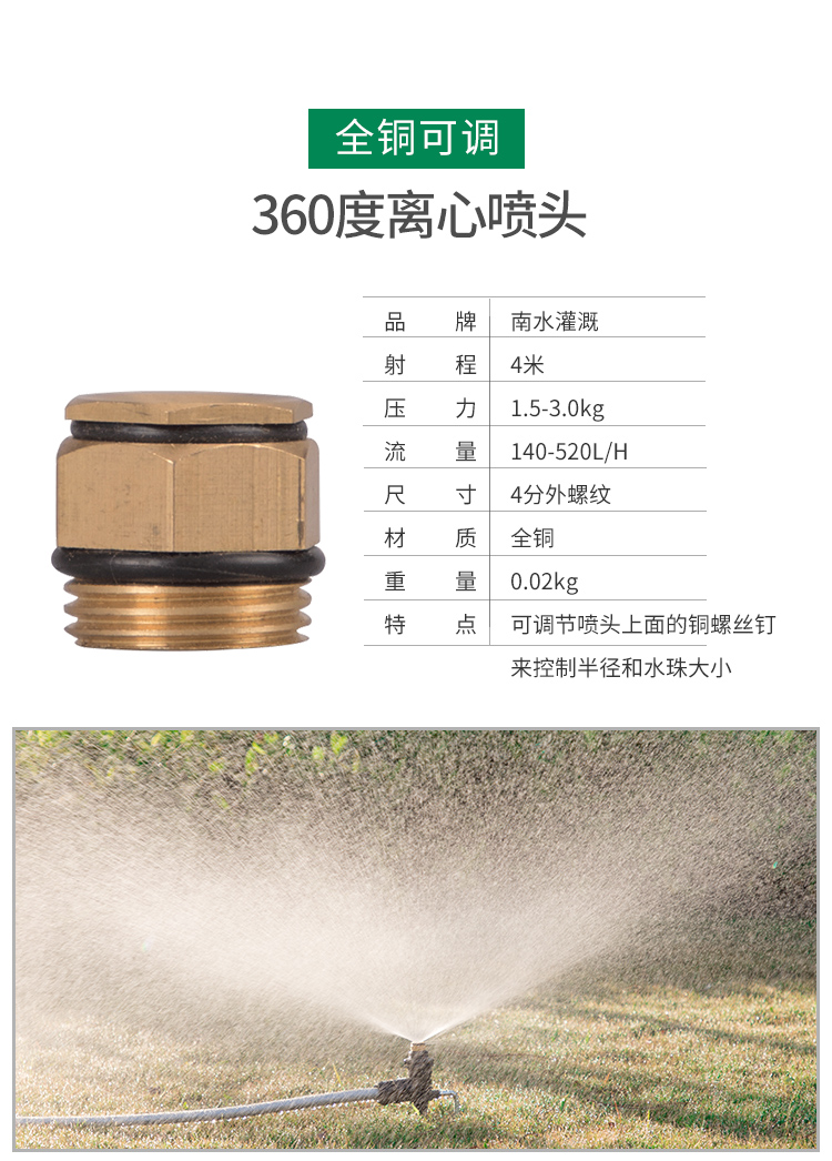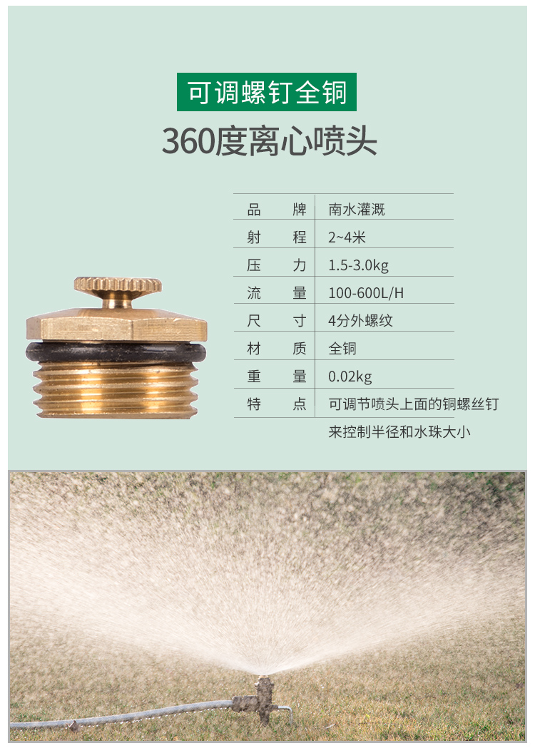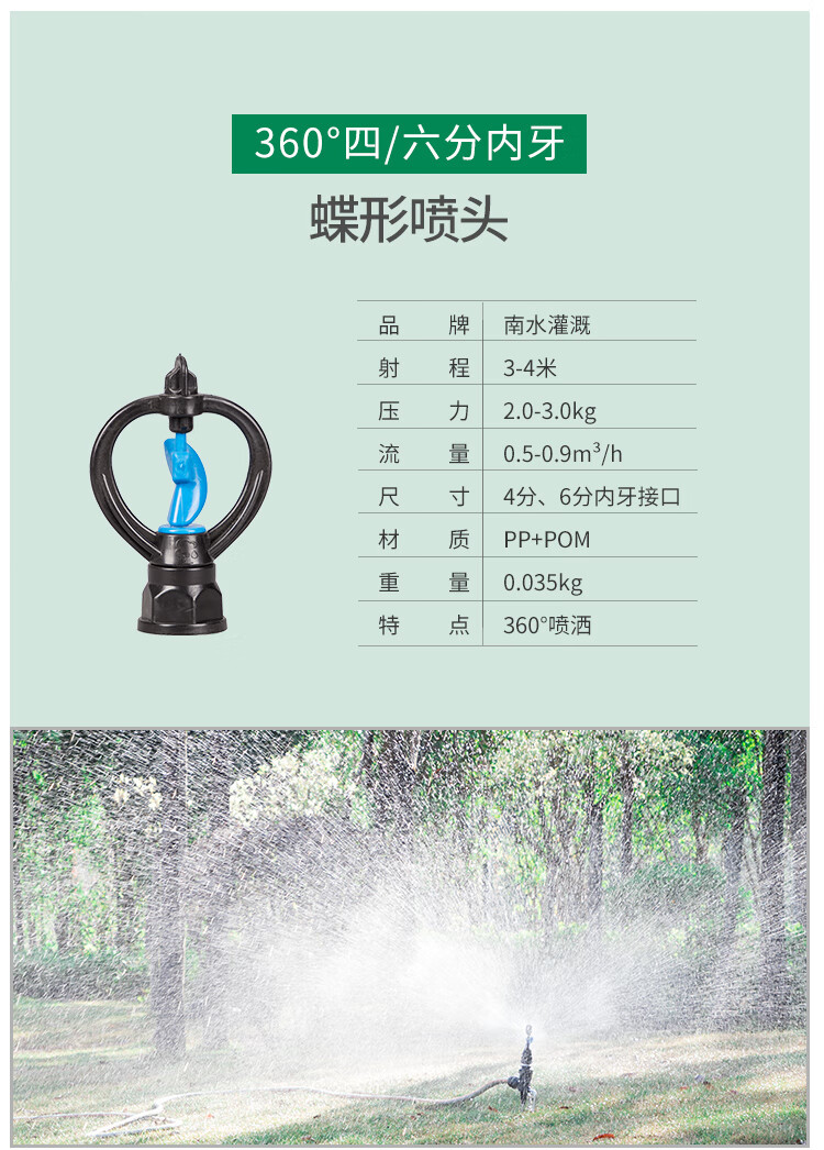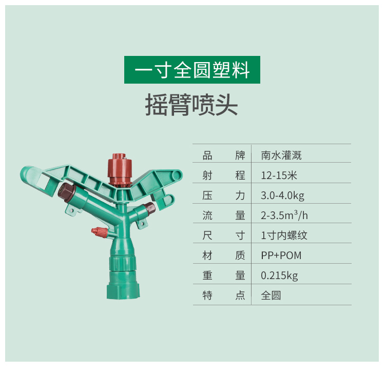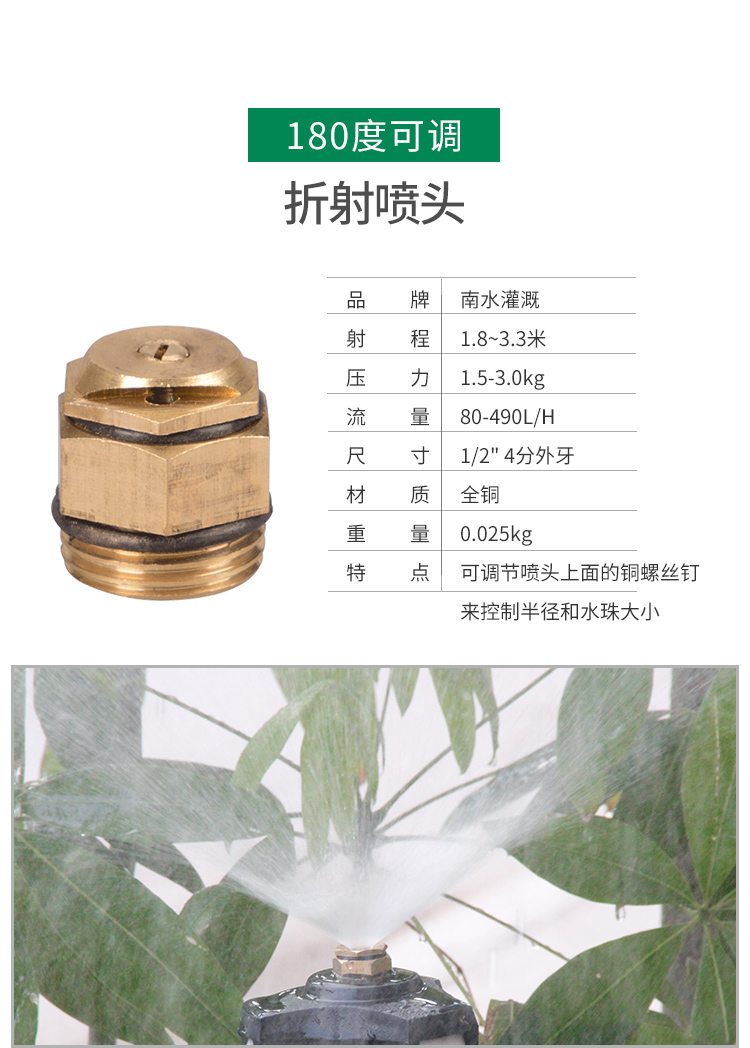 国产/进口:国产;分类:微喷;品牌:南水灌溉;包装清单:4分锌合金不可调角度摇臂喷头*2;