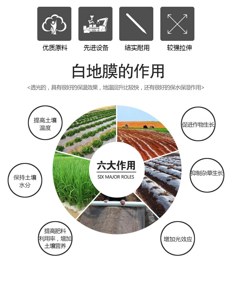 用途:地膜;性能:无滴薄膜;透光性:透明薄膜;品牌:悦顺;包装清单:农用白地膜0.7米宽1丝厚约560米长净重8斤/卷;