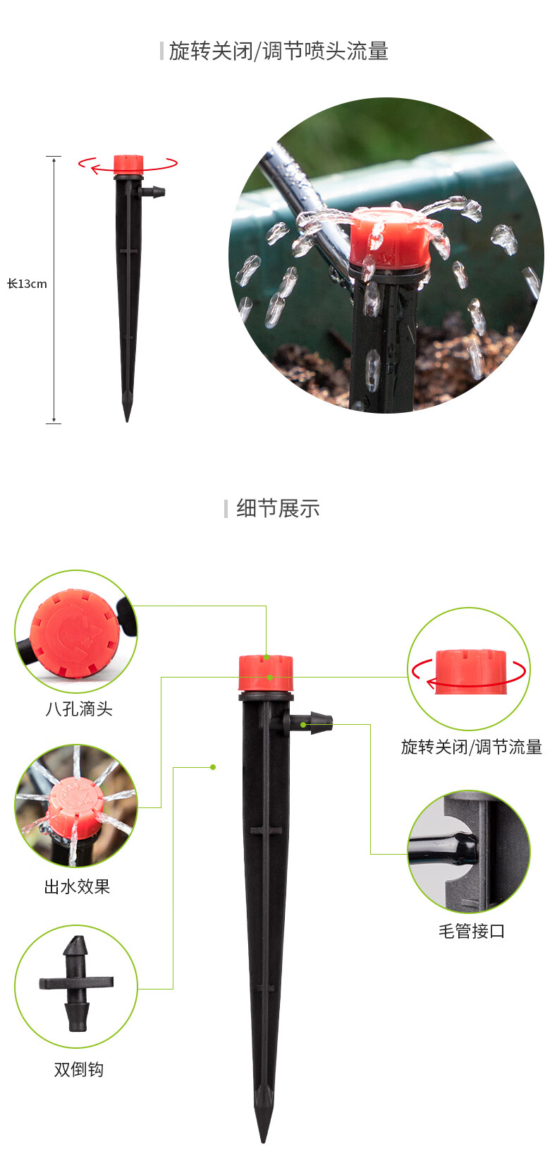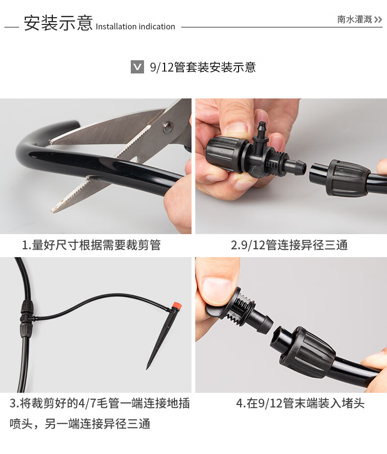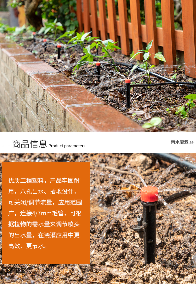 国产/进口:国产;分类:滴灌;品牌:南水灌溉;包装清单:奶嘴接头+快接*1 9/12管*15米 喷头*15 4/7管*5米 异径三通*15 堵头*1;