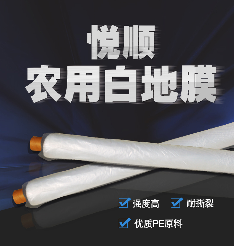 用途:地膜;性能:无滴薄膜;透光性:透明薄膜;品牌:悦顺;包装清单:农用白地膜0.8米宽1丝厚约490米长净重8斤/卷;