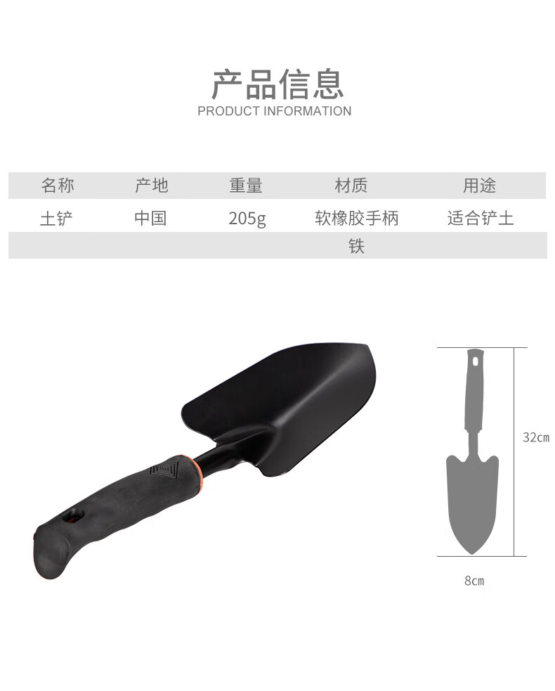 铲/耙/锹/锄:工具套装;材质:铁;分类:铲/耙/锹/锄;品牌:南水灌溉;包装清单:土铲*1;