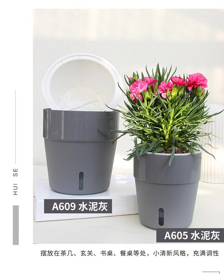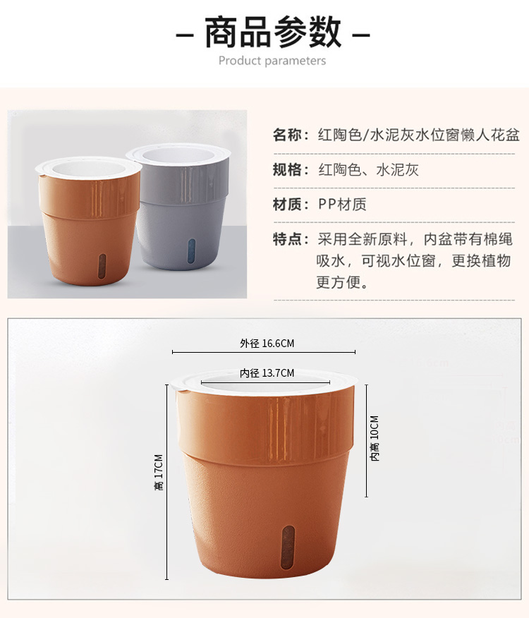 附加功能:拆装,多功能,移动;是否可定制:不可定制;尺寸:16-20cm;材质:塑料;国产/进口:国产;适用空间:桌面,地面;风格:简约;底部留孔:有孔;包装清单:梵蒂禧 水泥灰色水位窗花盆;