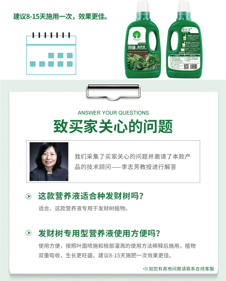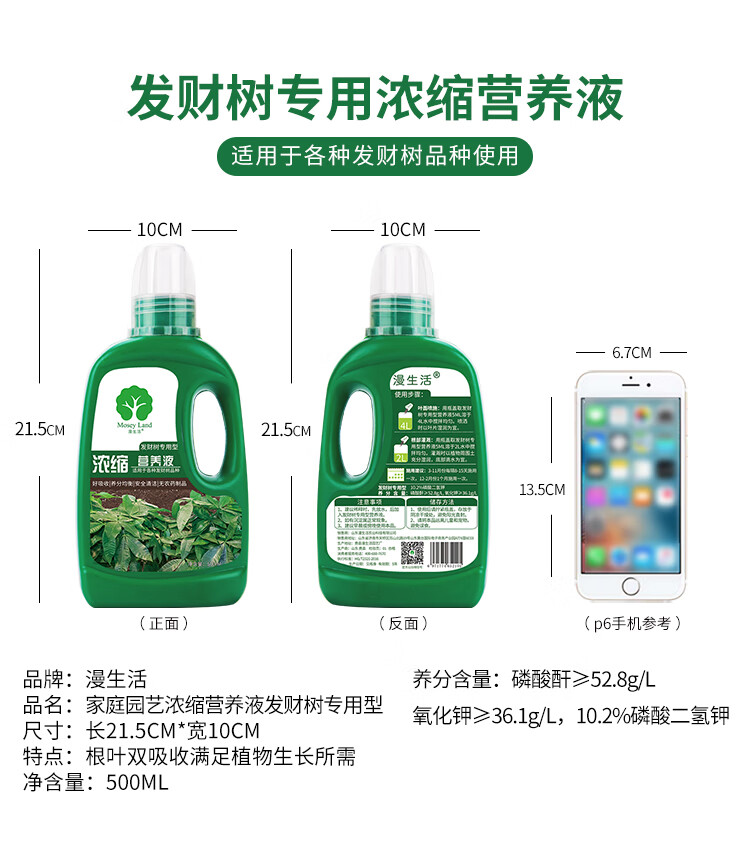 性状:液体;营养类型:营养液;品牌:漫生活;包装清单:发财树专用型营养液500ml;