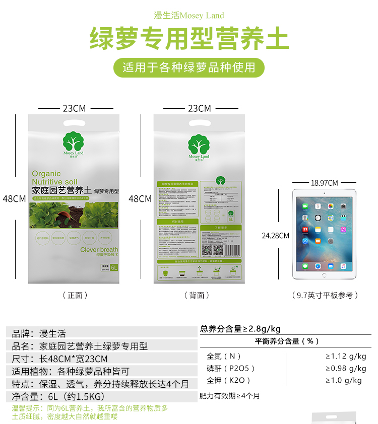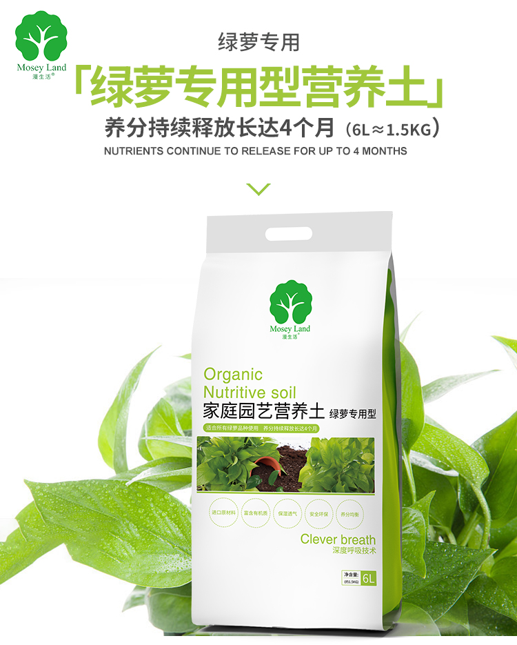 类型:复合基质;品牌:漫生活;包装清单:绿萝专用型营养土1袋装;