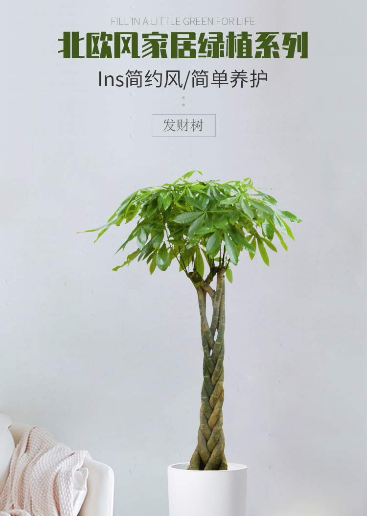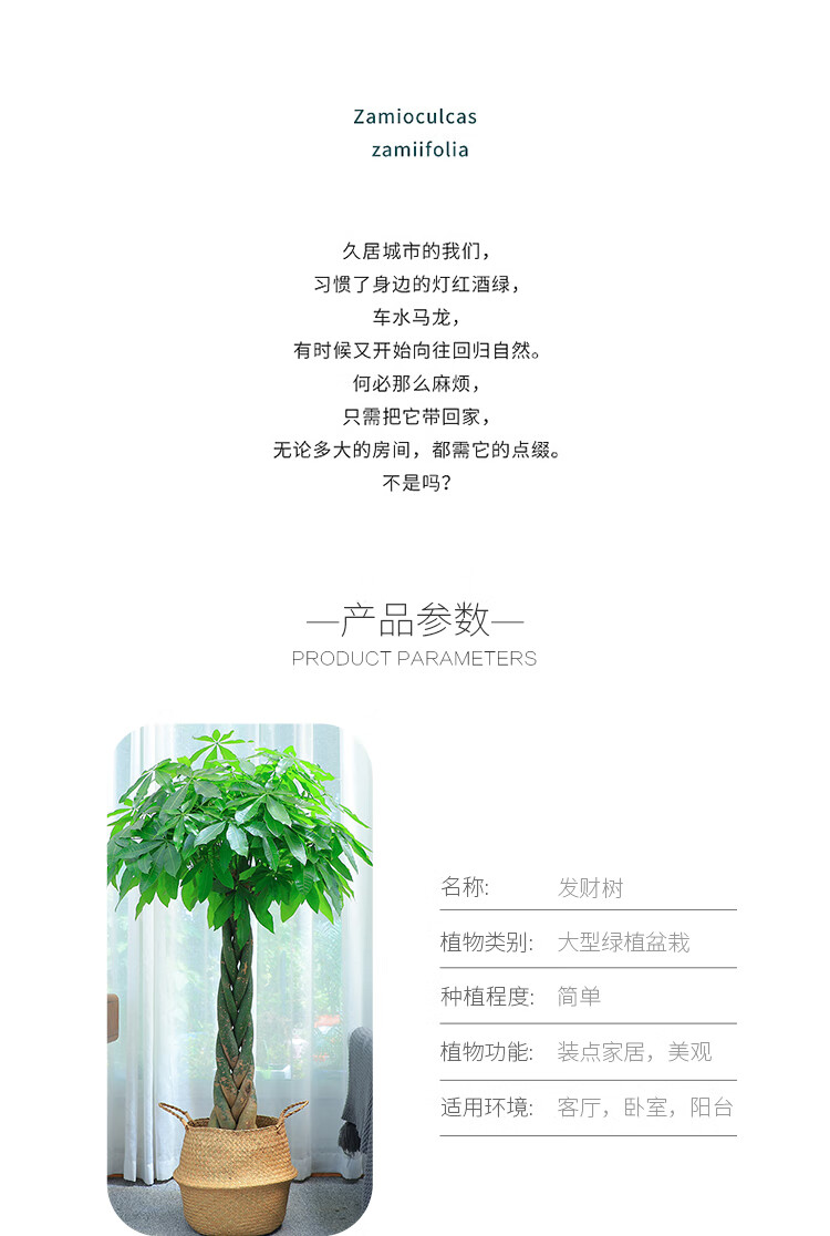 是否含花盆:含盆;适用空间:办公室,接待前台,书房,客厅;风格:简约风;植物品种:独杆发财树;整体高度:141cm-170cm;是否开花:否;品牌:种着玩;包装清单:配套托盘,瓷盆、水泥盆、塑料盆搭配塑料托盘,编织盆、布筒等搭配透明接水壳。;
