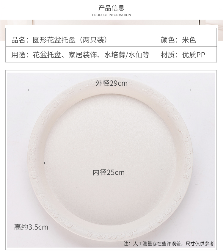 材质:塑料;底部留孔:无孔;尺寸:26-30cm;品牌:漫生活;包装清单:圆形托盘2只装;
