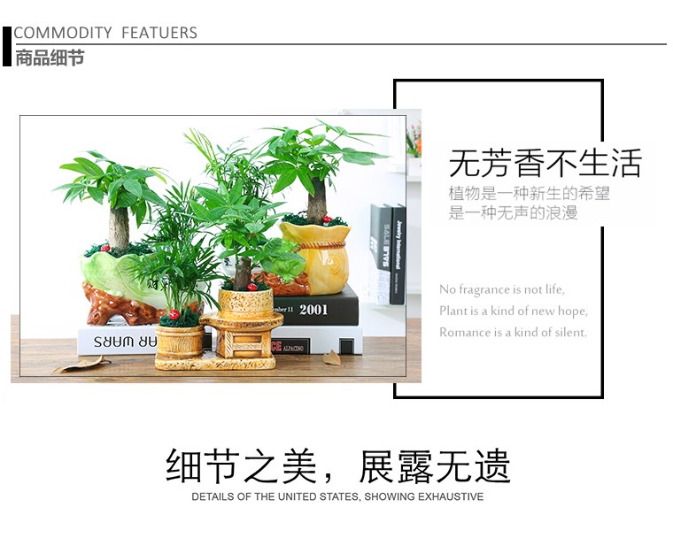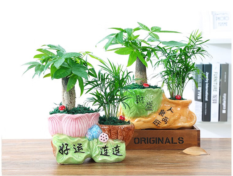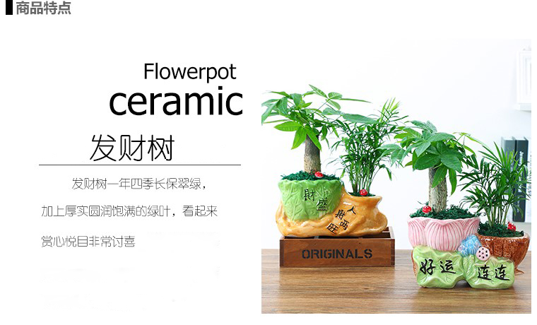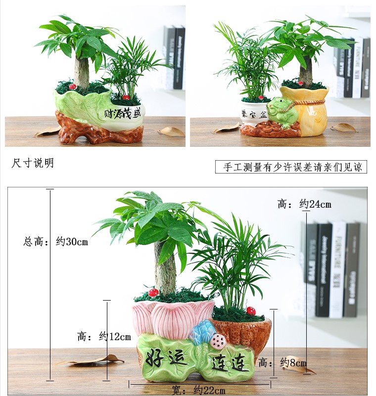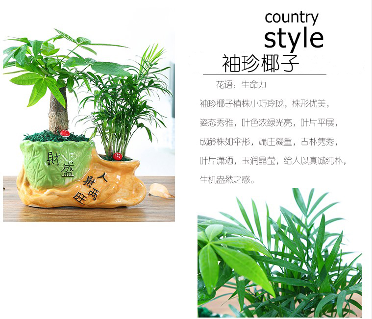 植物品种:发财树;是否含花盆:含盆;植物类别:观叶植物;适用空间:客厅,办公桌,卧室,书房;包装清单:财源茂盛 组合;