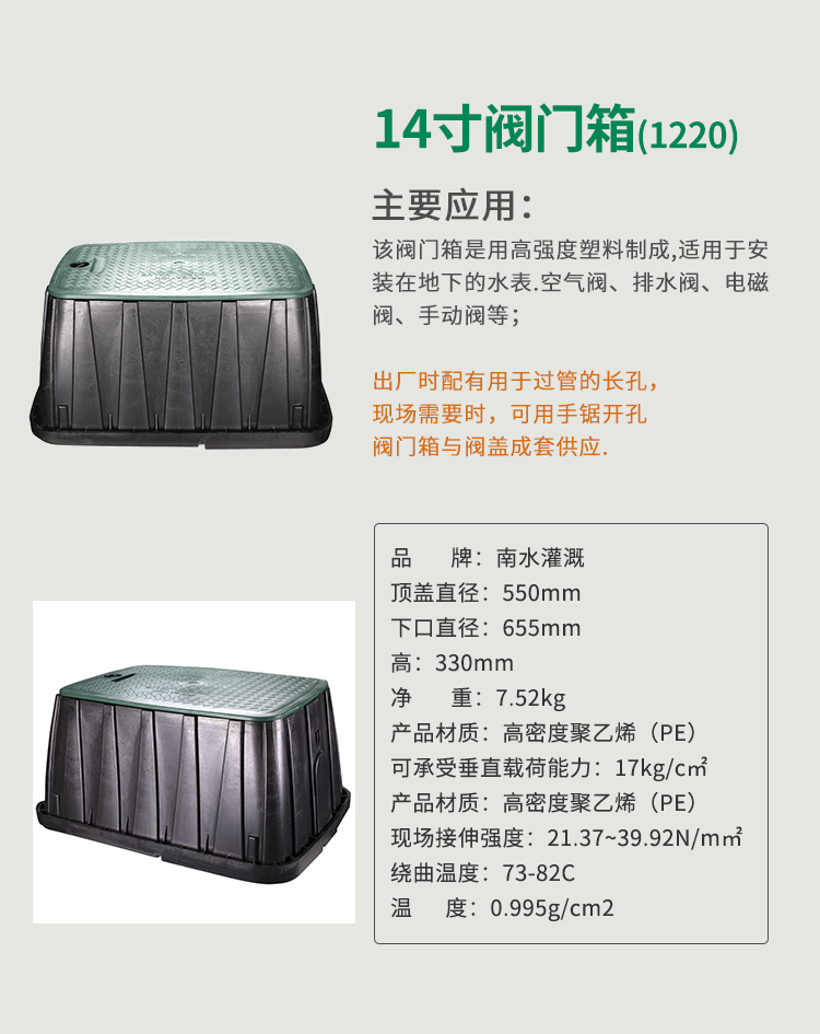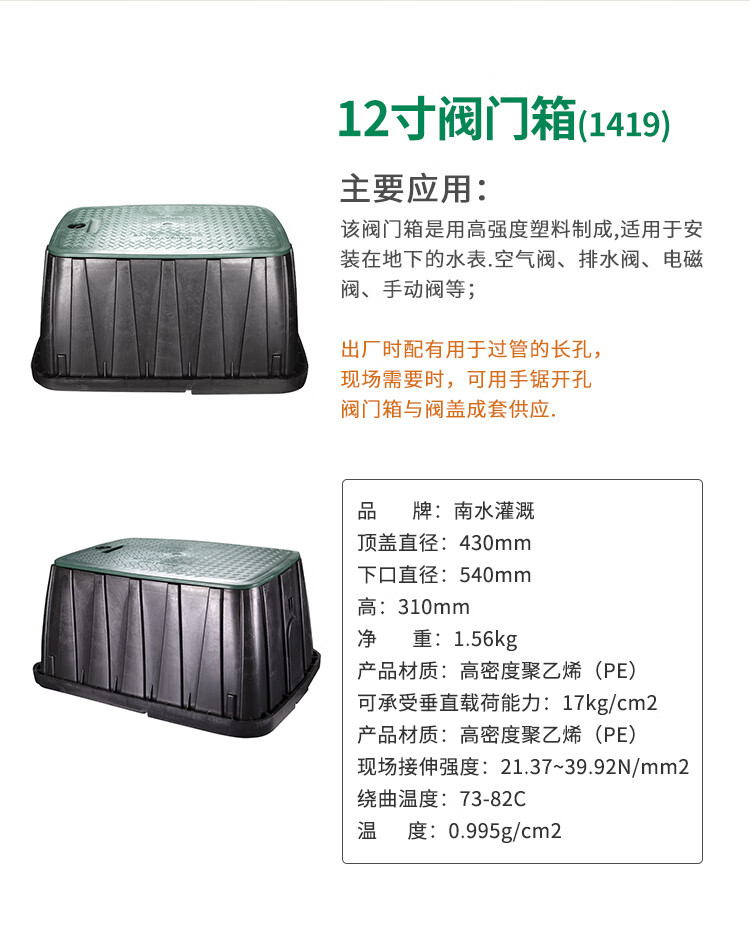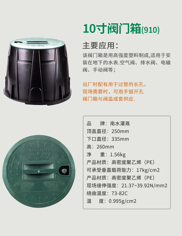 国产/进口:国产;分类:其它;品牌:南水灌溉;包装清单:10寸阀门箱*1;