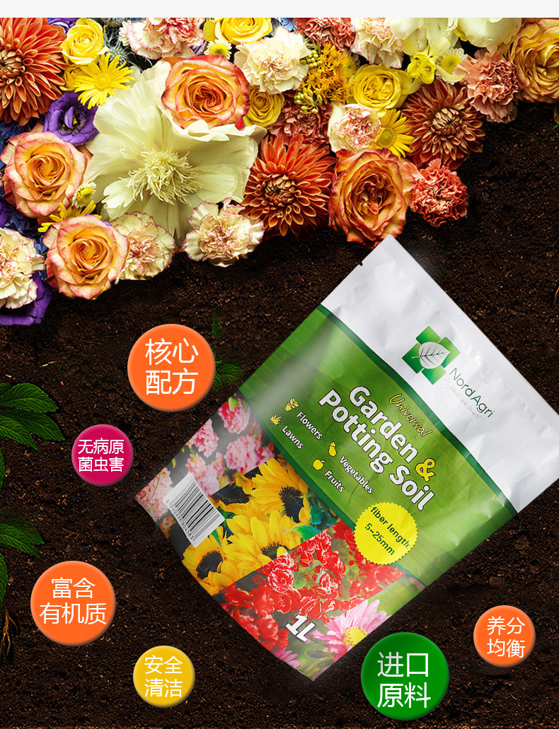 类型:泥炭;品牌:Nord Agri;包装清单:5-25mm拉脱维亚泥炭土1L*2袋;