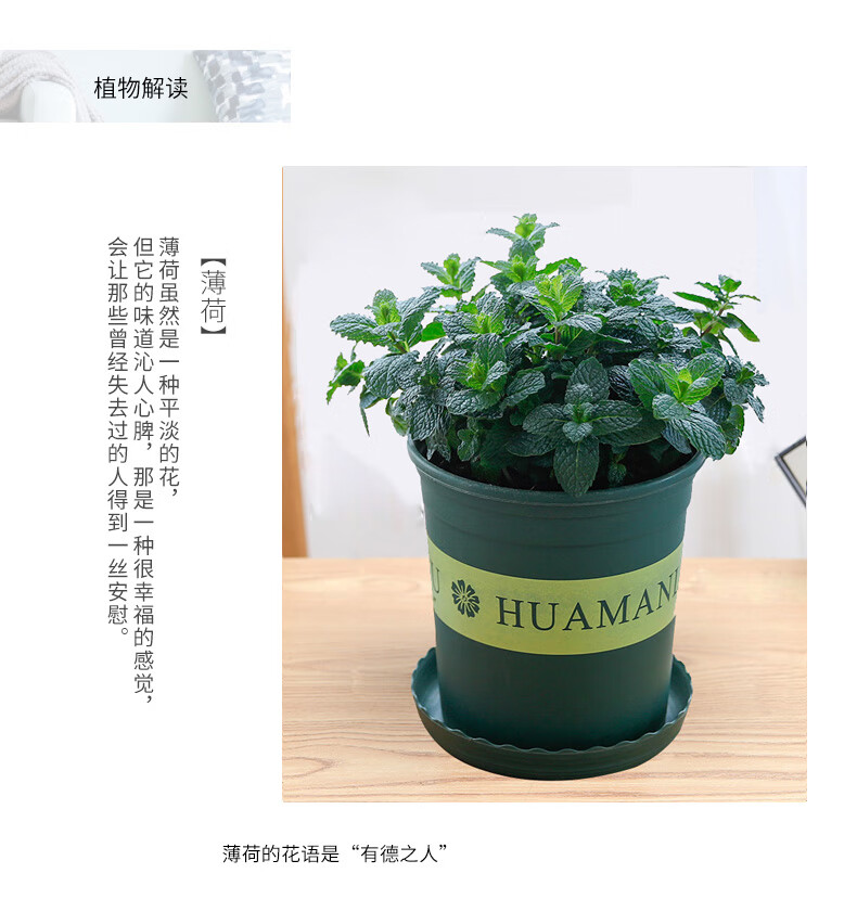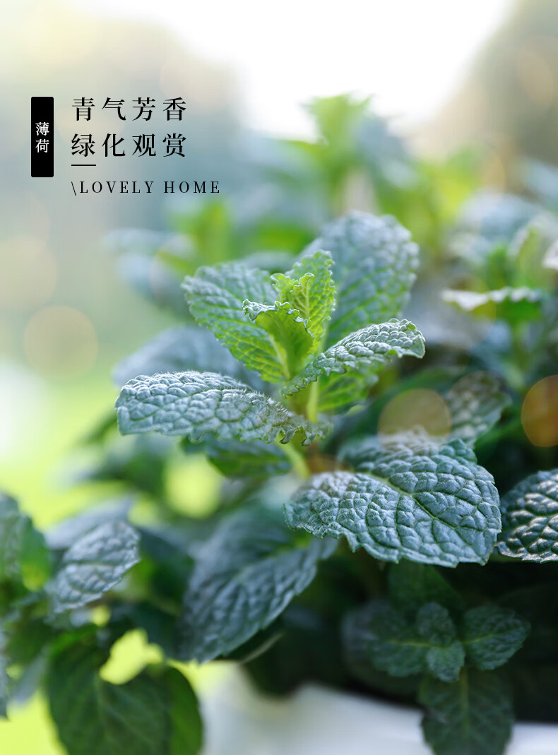 是否含花盆:含盆;植物品种:其它;植物类别:观叶植物;适用空间:庭院,阳台,办公桌,书房;包装清单:薄荷-加仑盆;