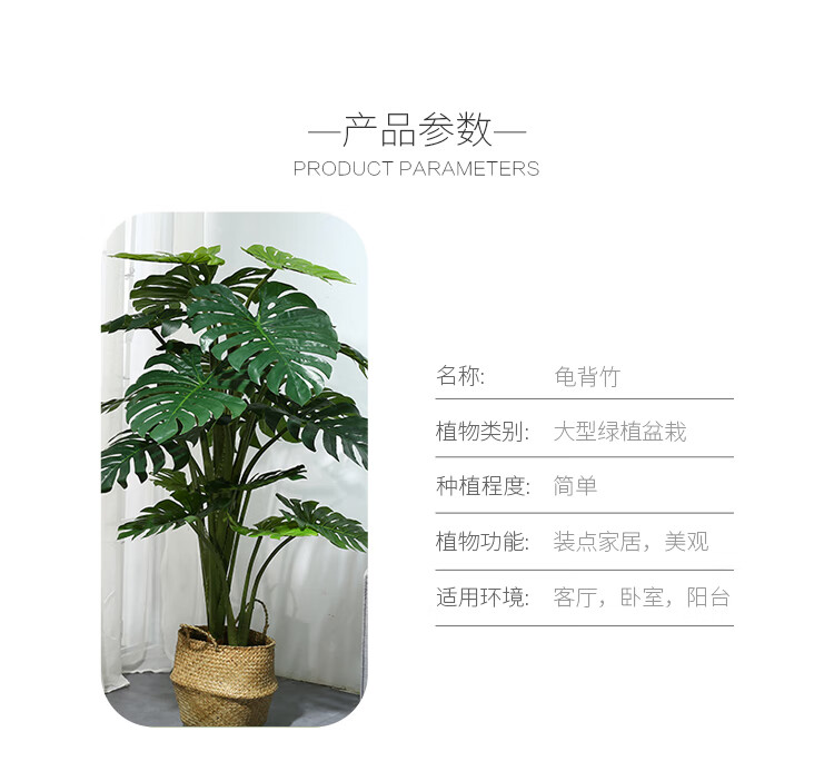 是否含花盆:含盆;适用空间:办公室,接待前台,书房,客厅;风格:简约风;植物品种:龟背竹;整体高度:51cm-80cm;是否开花:否;品牌:种着玩;包装清单:配套托盘,瓷盆、水泥盆、塑料盆搭配塑料托盘,编织盆、布筒等搭配透明接水壳。;