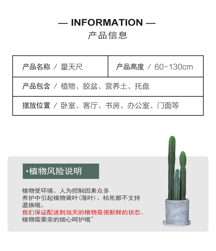 是否含花盆:不含盆;适用空间:接待前台,阳台,书房,客厅;风格:北欧风;植物品种:量天尺;整体高度:51cm-80cm;是否开花:否;品牌:深夜花园;包装清单:高约30厘米;