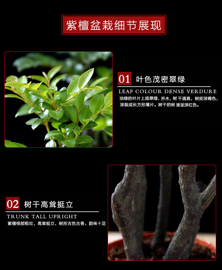 植物品种:小叶紫檀;是否含花盆:不含盆;植物类别:观茎植物;适用空间:阳台,客厅,办公桌,书房;包装清单:小叶紫檀盆景独杆树苗;