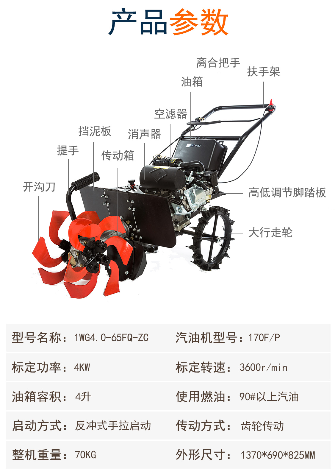 传动类型:直传动;动力类型:汽油机驱动;包装清单:微耕机主机1台 说明书 工具包;